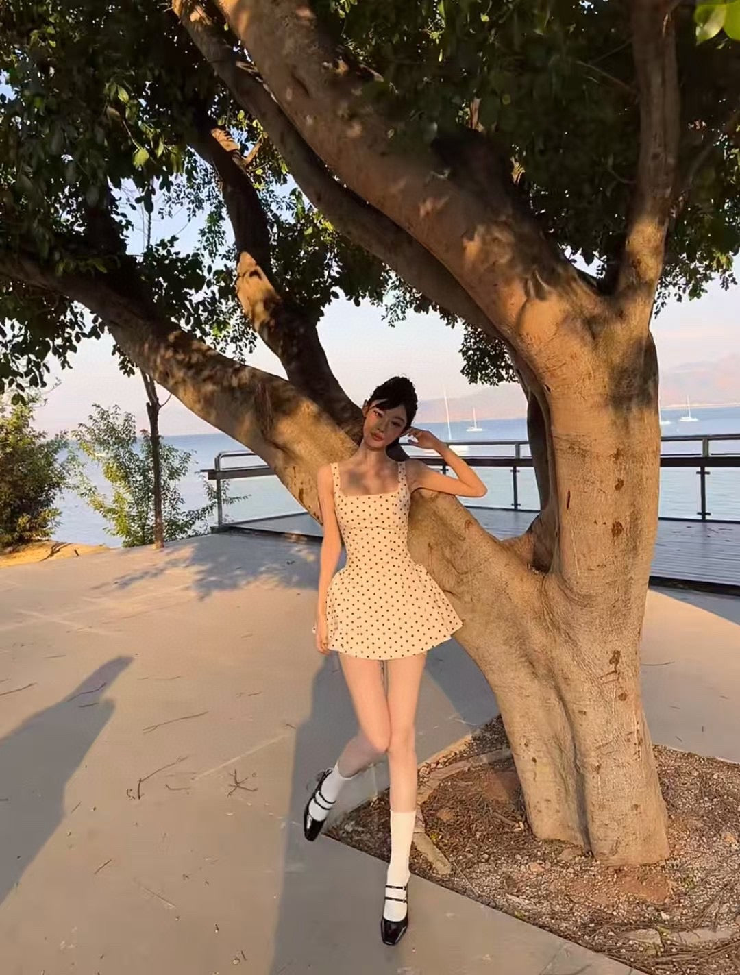 Parisian Polka Dot Tulle Paneled Dress | Ballerina Princess Mini with Smocked Waist & Puff Skirt|Best Vacation Dress